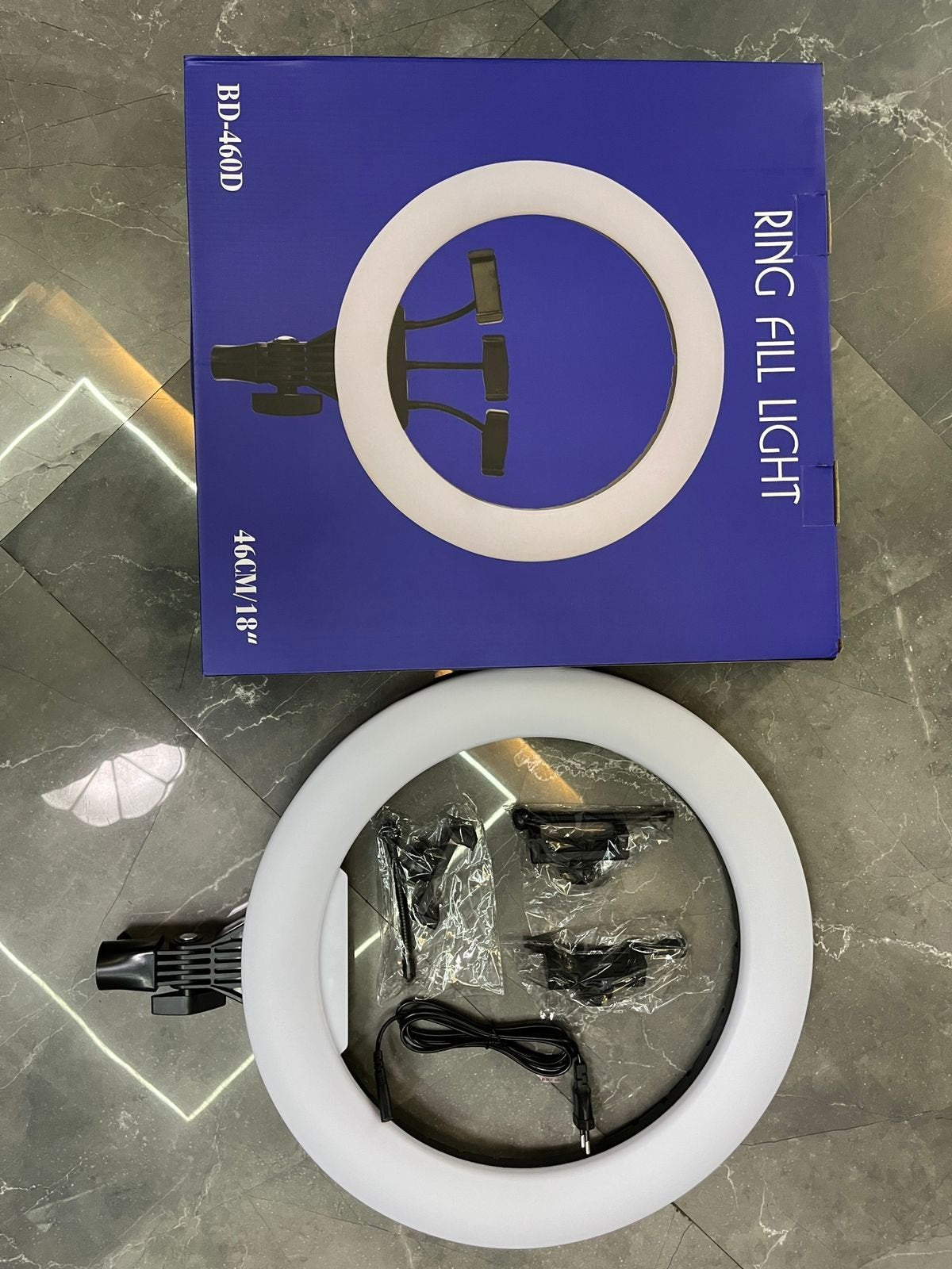 The BD-460D 46 cm Ring Fill Light is the perfect lighting solution for professional photography, video streaming, and content creation. Designed with a 46 cm diameter, it provides soft, even lighting that reduces harsh shadows and highlights, ensuring a flawless, natural look. With adjustable brightness and color temperature settings (3000K-6000K), it offers complete control over your lighting environment. Ideal for use in beauty shots, product photography, and online tutorials, the BD-460D features a stable stand and USB-powered convenience, making it portable and easy to use. Enhance your content with studio-quality lighting from the BD-460D ring light